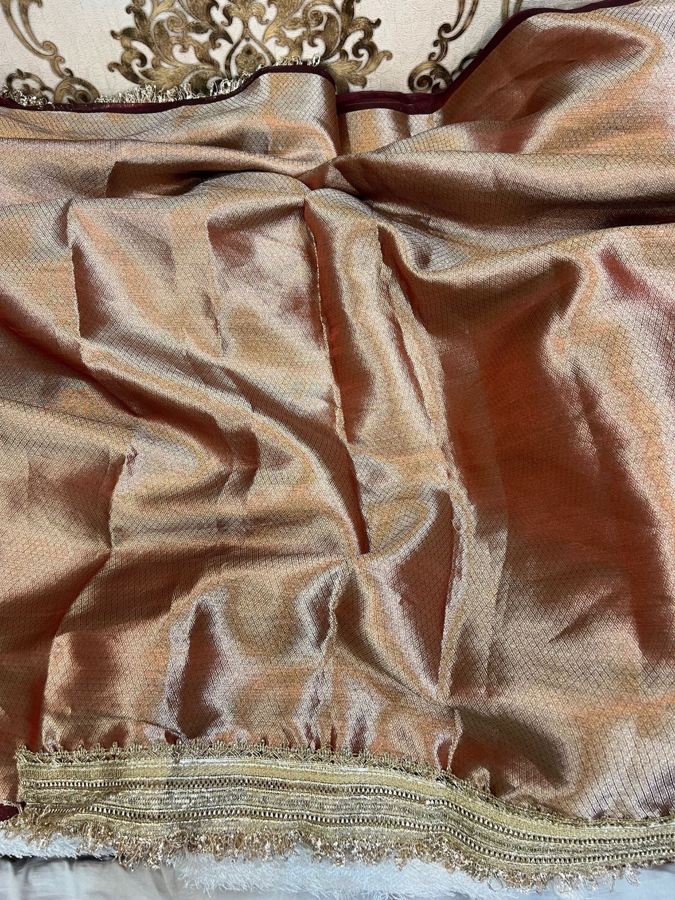 Maroon Banarasi Tissue Silk Saree with custom name Motifs